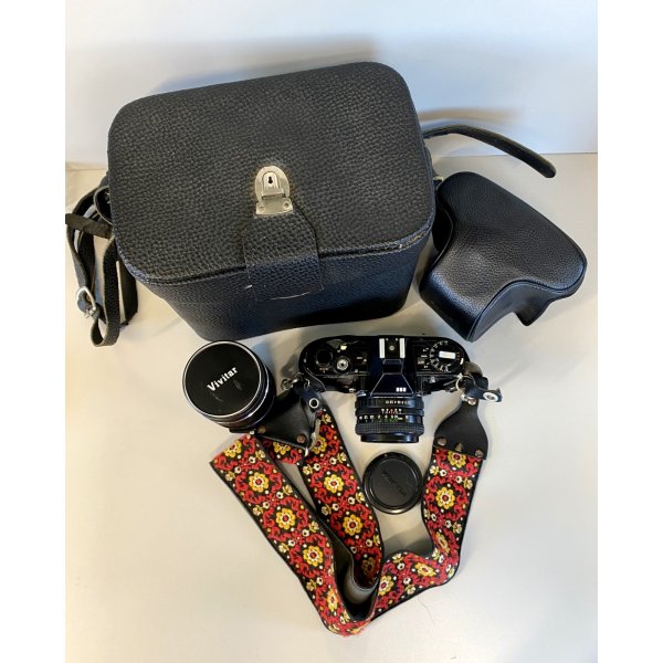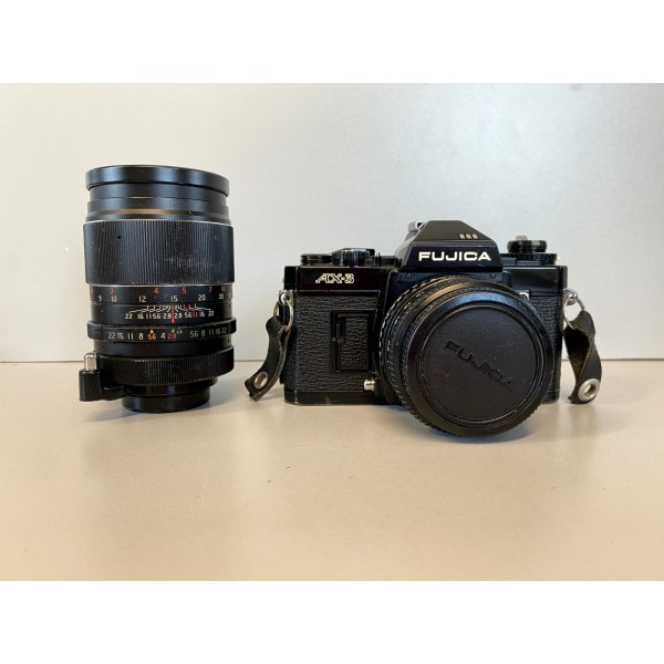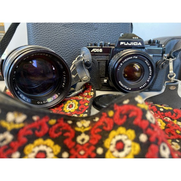 Composto da: Fotocamera reflex analogica, custodia e borsa, FUJICA AX-3 LENS X-FUJINON 50mm Vivitar TELE 135mm with case