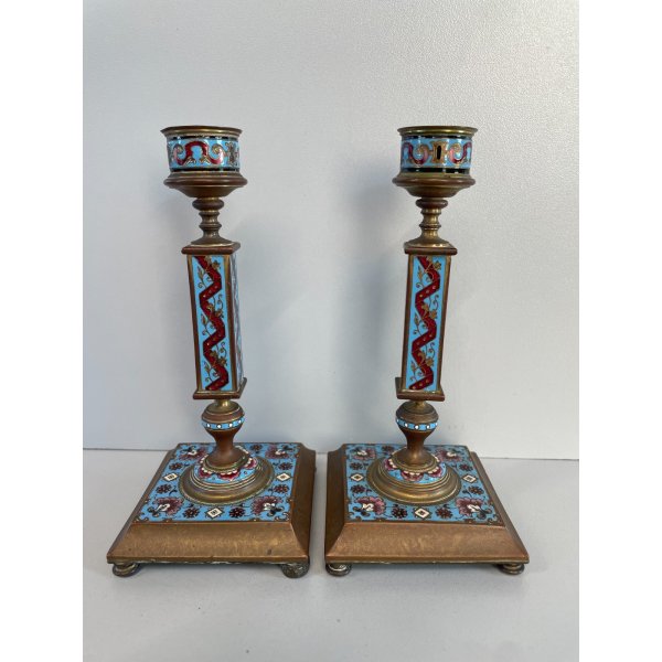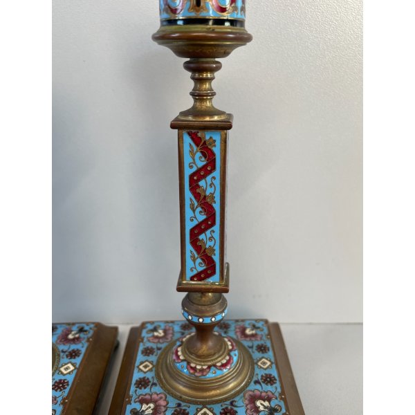 ANTICA COPPIA DI CANDELIERI CLOISONNE EPOCA...