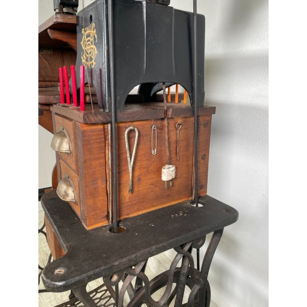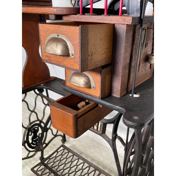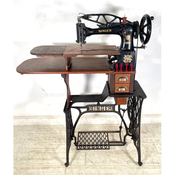 Fantastica rara macchina da cucito calzolaio Singer, primissimi del '900, buone condizioni, funzionante, modello 29k51, numero di serie 8401361, struttura in ghisa con doppio ripiano in legno rimovibile, presenta 3 cassetti che all'interno custodiscono attrezzi vari.