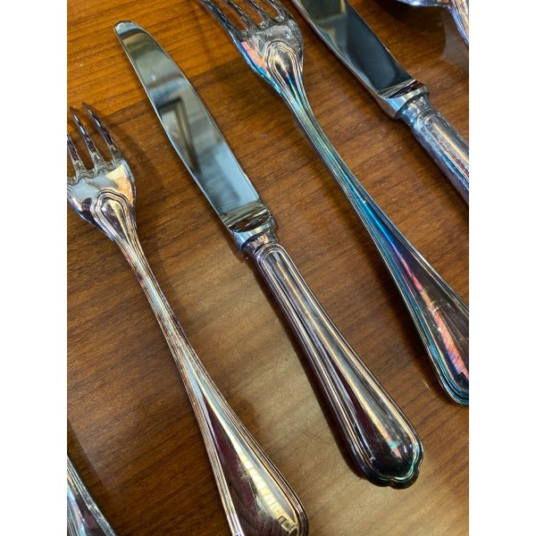 Note: Servizio di posate vintage raro, di altissima qualità e bellezza. Il nome "Spatours è una contrazione delle parole "Spatola" e "Contorno" e si rifrisce alle linee sinuose del design. La collezione. Collezionisti ed interessati non fatevelo scappare!!