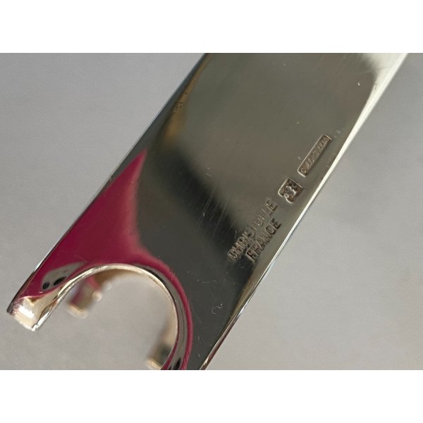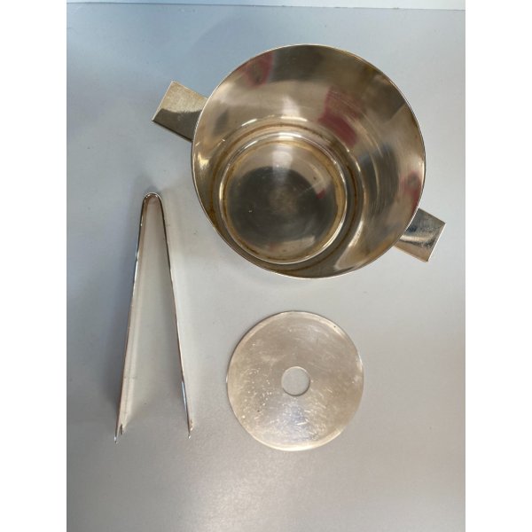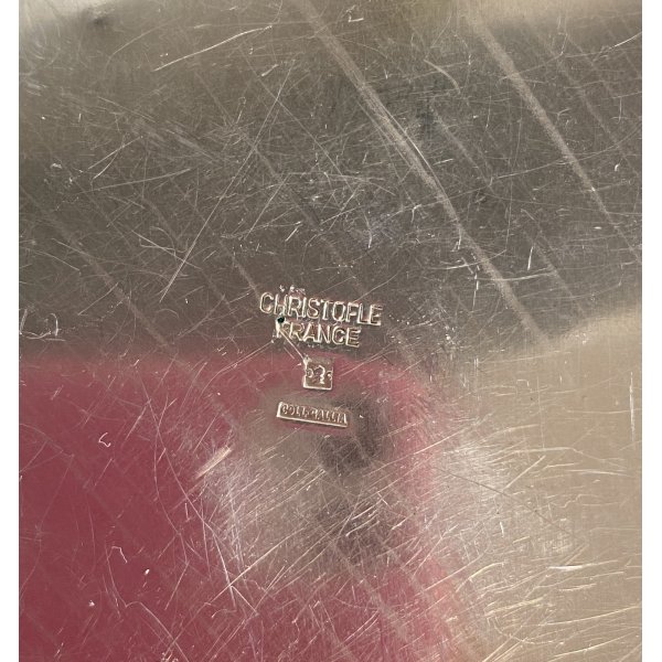 Meraviglioso secchiello per il ghiaccio, ice bucket in metallo silverplated, sulla base e sulla pinza presenta il punzone "Christofle" France, che indica la sua appartenenza ad una delle collezioni storiche dell'azienda, risalente alla metà del '900. Design minimalista, essenziale, elegante. In buone condizioni, presenta leggeri segni del tempo come segnetti da appoggio/utilizzo, segnalo una macchia giallo ottone visibile in prossimità della base. Tutto visibile dalle fotografie allegate, osservarle con attenzione.
