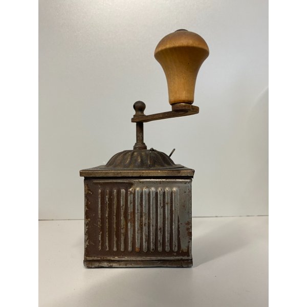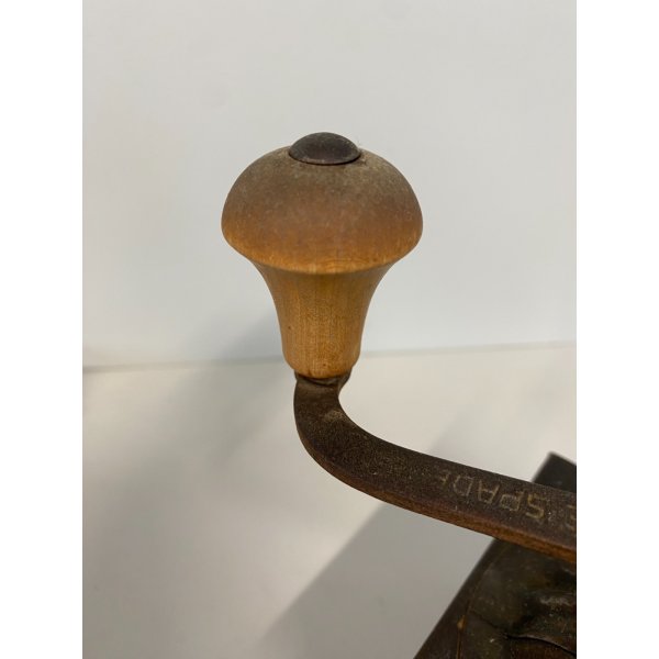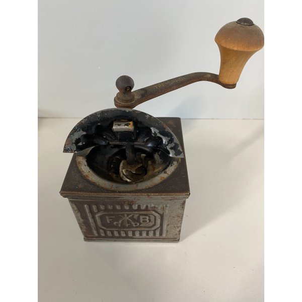 Incantevole antico piccolo macina caffè in ferro (16 cm/h), prodotto da FB Tre Spade, Fratelli Bertoldo. Modello storico, il suo design è rimasto invariato per oltre un secolo, realizzato in lamiera di ferro stampata, con la presa della manovella è originale, in legno di faggio. Un autentico oggetto funzionale per macinare il caffè considerato anche un pezzo di design vintage da collezione.
