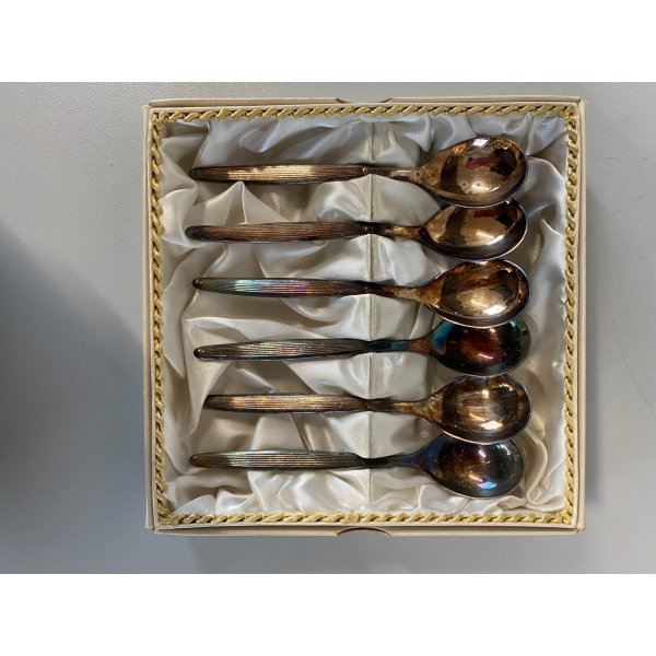 Stupendo set di cucchiaini "fürst-Besteck", lo slogan dice: Apparecchiare in modo principesco - Qualcosa di buono - un set di posate "Fürst" da Solingen. Il set vintage anni '50, ancora contenute nella scatola originale, punzonati "Fürst - logo- 90-18"