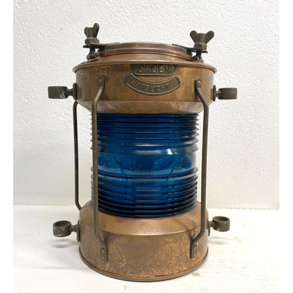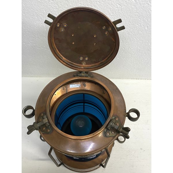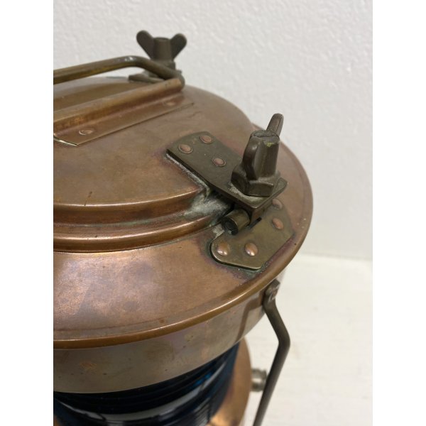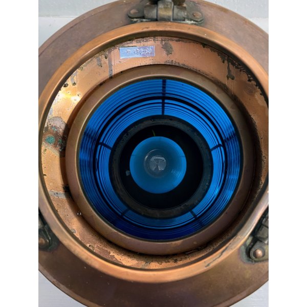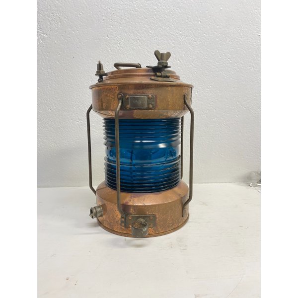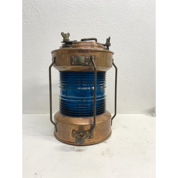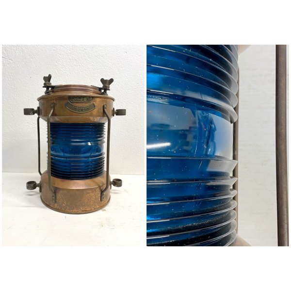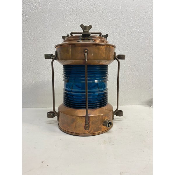 Modello: Lanterna, fanale, Luce di navigazione, Luce per pesca, Vintage Ship Navigation Light with Blue Glass Insert, Complemento d'arredo, Lampada cozy chic.