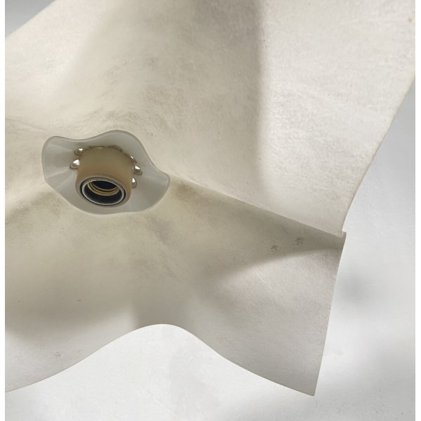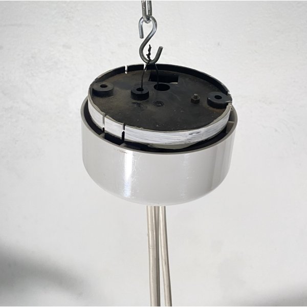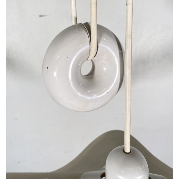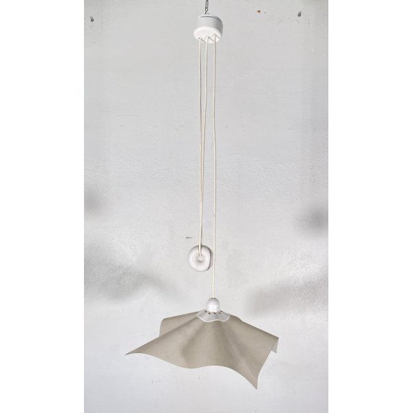 Stupendo lampadario saliscendi di Mario Bellini modello Area 50 per Artemide degli anni 70 realizzato in metallo e carta