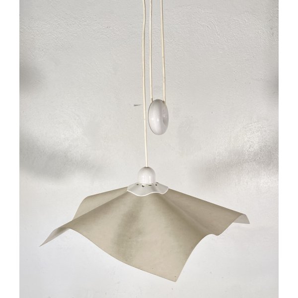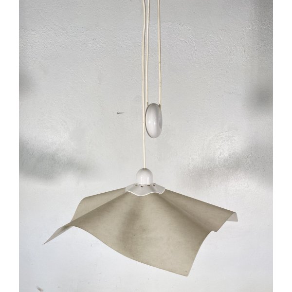 Stupendo lampadario saliscendi di Mario Bellini modello Area 50 per Artemide degli anni 70 realizzato in metallo e carta