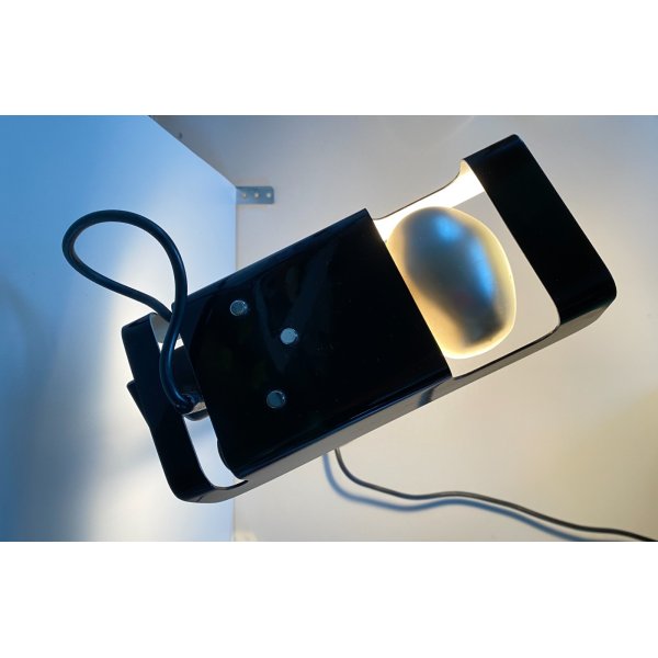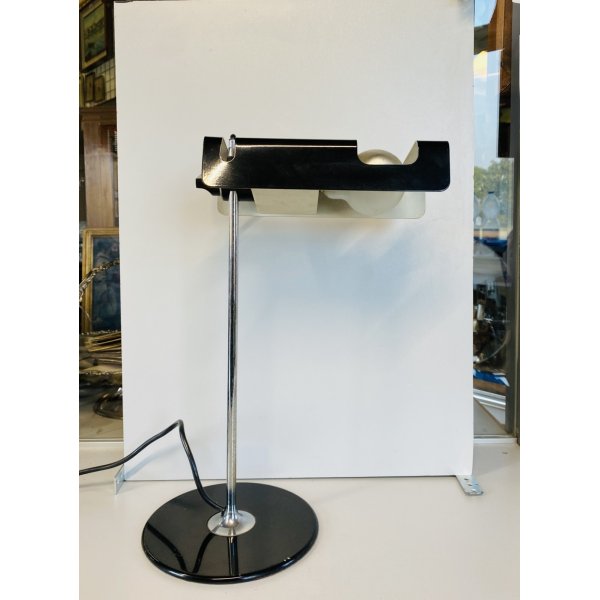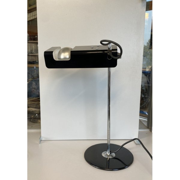 Stupenda Lampada da tavolo Spider 291 Colore Nero, disegnata da Joe Colombo nel 1965, Prodotta da Oluce. Funzionante con cavo di alimentazione originale, in buone condizioni conservative, segnalo piccoli punti mancanti di laccatura sul profilo della base oltre ad una leggera fioritura di ruggine della stessa e della struttura in metallo cromato. Dati tecnici: Lampada da tavolo a luce diretta con base in metallo verniciato, asta cromata; riflettore, orientabile e regolabile, in alluminio verniciato. Portalampada G9. Altezza 40 cm