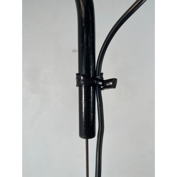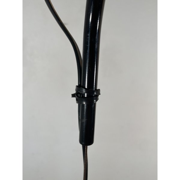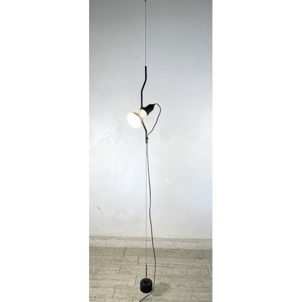 Stupenda lampada sospensione modello Parentesi di Achille Castiglioni per Flos anni 70, la luce è regolabile in altezza e posizione, h 230 cm.