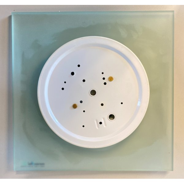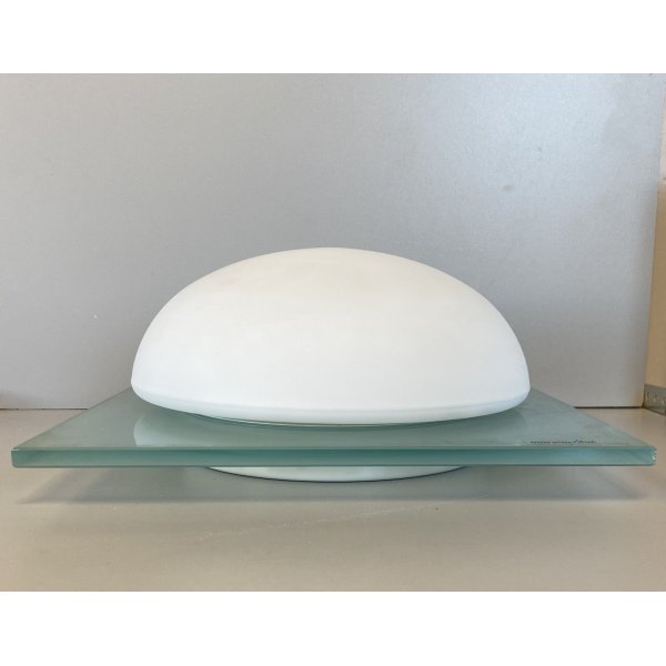 Stupenda lampada a plafoniera o applique "Gio 30 P-PL" Disegnata negli anni '90 da Michele Sbrogiò per Murano Due. Con diffusore centrale in vetro soffiato satinato bianco e piastra posteriore in cristallo squadrato, molato, trasparente. In ottime condizioni conservative. Dimensioni 30x30x13 cm/h. Segnalo la mancanza del portalampada (luce E27) Disponibili altre 2 complete di portalampada