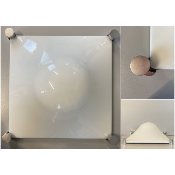 Materiali: Base in metallo laccato bianco - Diffusore in metalcrilato opalino