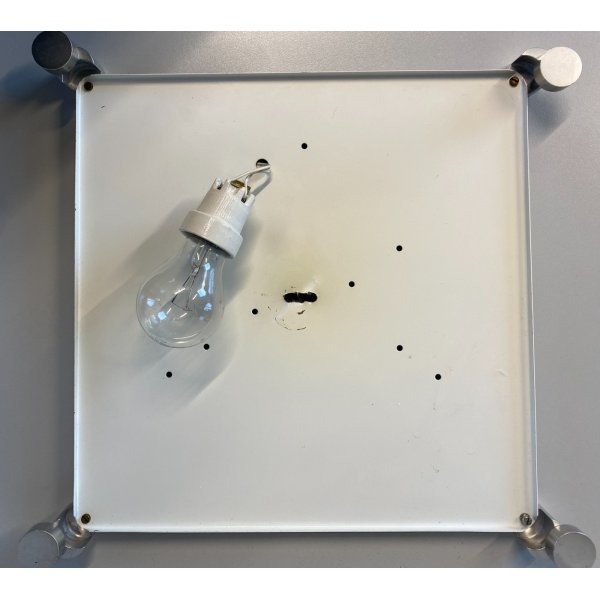 Condizioni: Buone condizioni, piccoli segnetti del tempo e di utilizzo sui cilindri in alluminio, segnalo i fori di fissaggio della base leggermente ingranditi dal precedente utilizzo. Particolari che non hanno compromesso la bellezza e l'utilizzo della lampada. Analizzarle con attenzione le fotografie allegate.