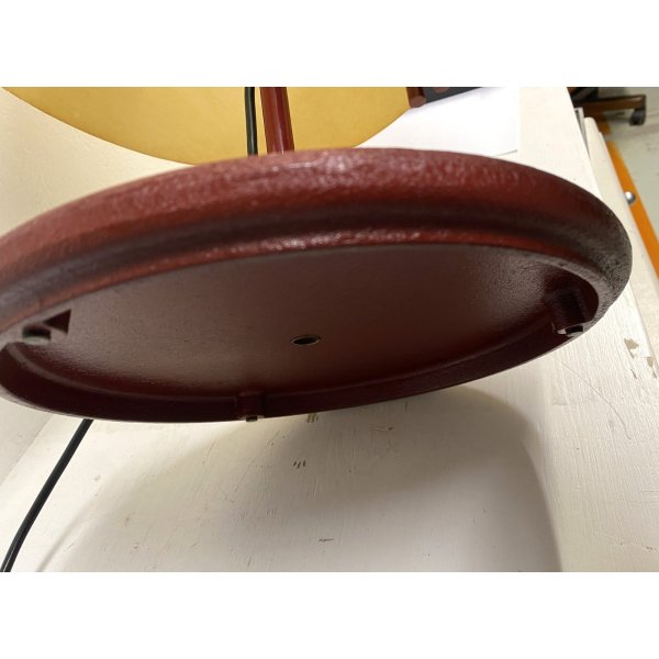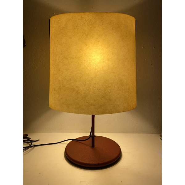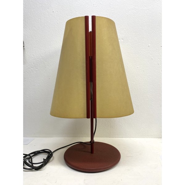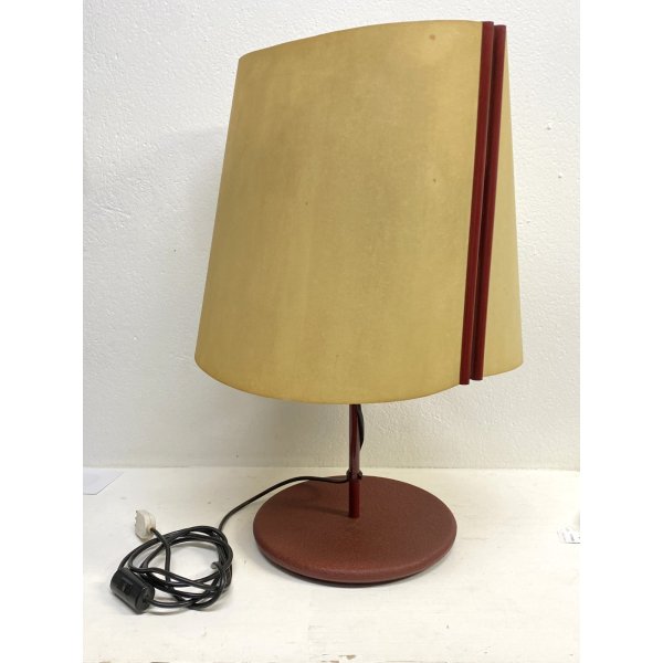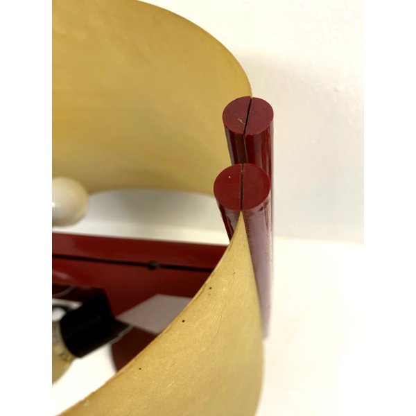 Stupenda, grande lampada da tavolo modello "Paralume" disegnata da R. Beretta e A. Macchi Cassia e prodotta da Stilnovo negli anni '70/'80. Funzionante, a due lumi con basamento in ghisa, struttura in metallo verniciato color rosso scuro/bordeaux e paralume in pergamena. Il logo "Stilnovo - R. Beretta A. Macchi Cassia" è impresso sul portalampada in plastica nello stesso colore del corpo. La lampada si presenta in buone condizioni conservative, con i normali segni del tempo e dell'uso, che ne attestano la storia e il valore di pezzo d'epoca. Un complemento di arredo che unisce funzionalità, stile e storia del design italiano. Il paralume in pergamena si può sganciare e pulire ulteriormente.