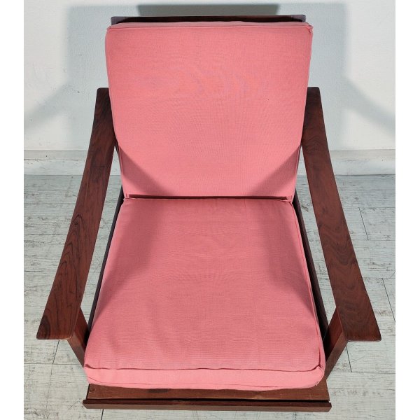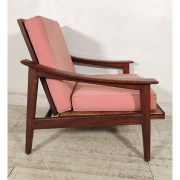 Bellissima coppia di poltroncine imbottite reclinabili a sdraio, in legno massello di palissandro, design danese