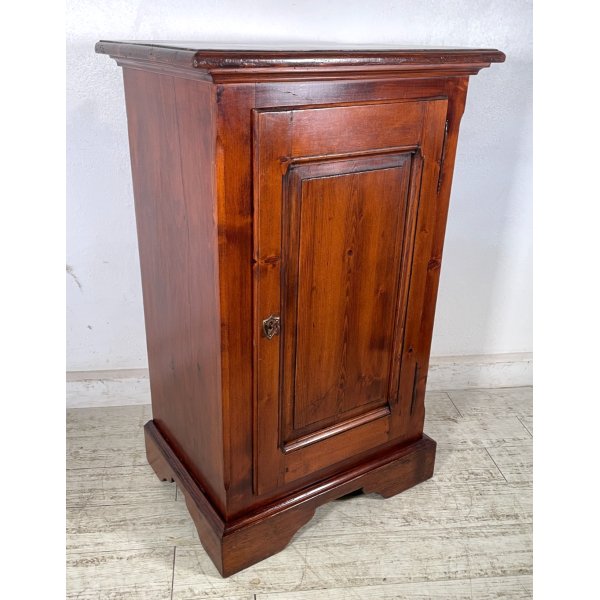 Deliziosa credenza dalle piccole dimensioni, in legno di abete, composta da un anta con all'interno due ripiani, struttura sana e robusta, serratura funzionante.