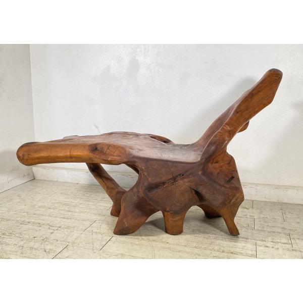 Fantastica grande chaise longue anni 60 realizzata da un ceppo d'albero e numerata sul retro (189/300), attribuibile a Josè Zanine Caldas