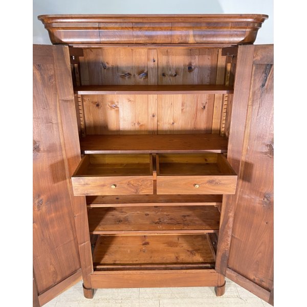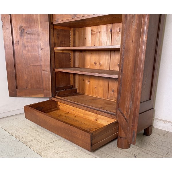 Fantastico rarissimo armadio del 1800 tutto in legno massello di Noce in stile Cappuccino, con 2 ante e 3 cassetti di cui due interni e uno segreto esterno, internamente i ripiani e i cassetti sono regolabili in altezza