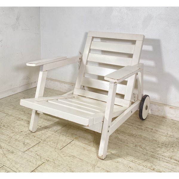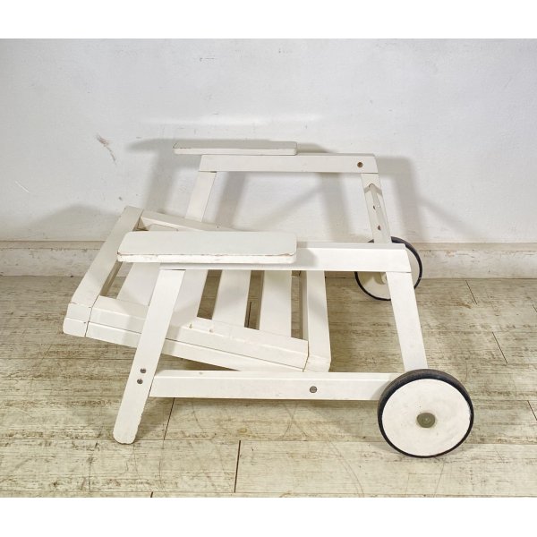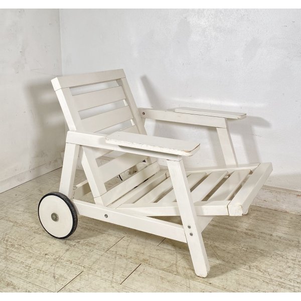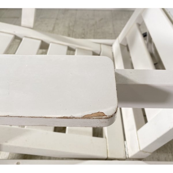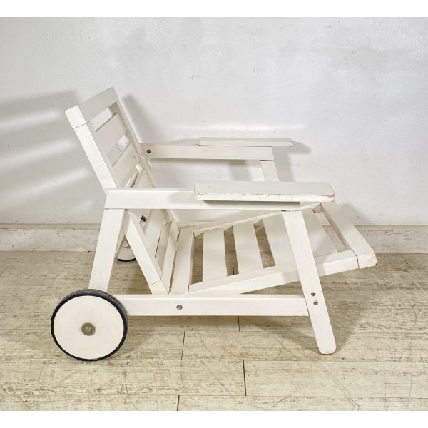 Condizioni: Segni del tempo e dell'utilizzo, qualche graffio e pezzi di laccatura mancanti sul legno, il meccanismo per abbassare la seduta a sdraio non funziona (il ferro non si sfila dai buchi) necessita di una controllata, per il resto la struttura è robusta, analizzare tutto attraverso le foto allegate in inserzione