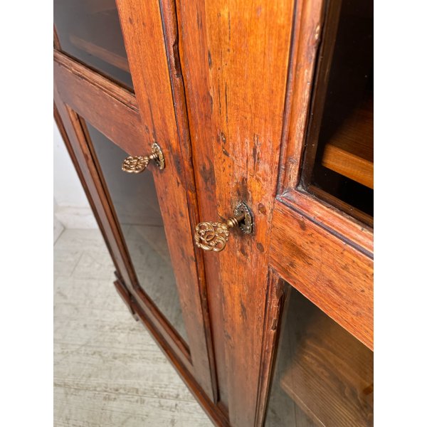 Fantastico antico armadio vetrina del 1800, legno di pioppo, serrature funzionante, struttura sana, presenta due ante con vetri e internamente 3 ripiani per riporre o esporre oggetti, armadio a doppio corpo smontabile.