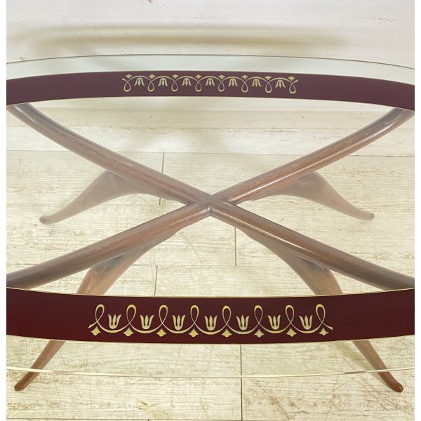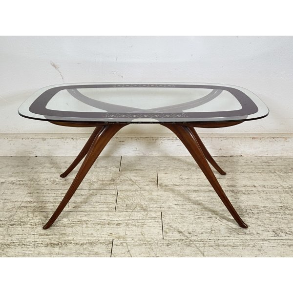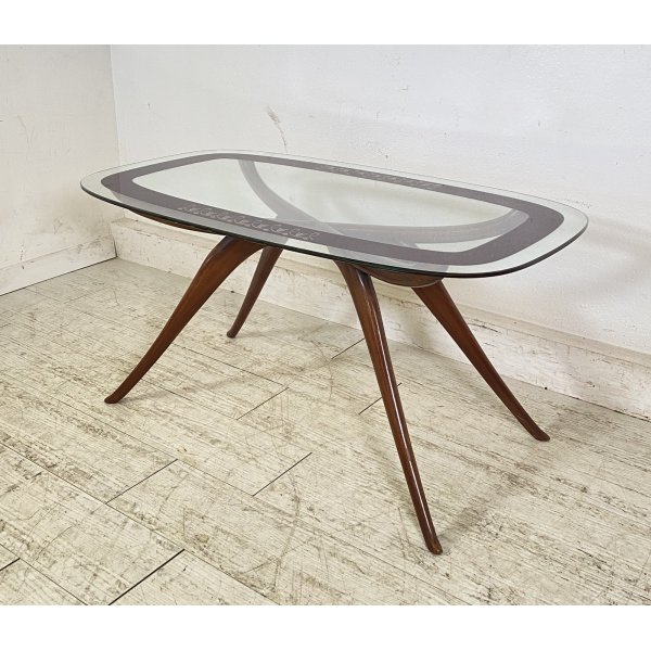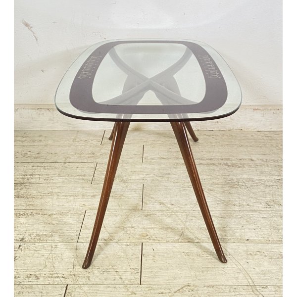 Fantastico tavolino da salotto degli anni 40 attribuibile a Luigi Scremin, tavolino composto da una struttura in legno e da un ripiano in vetro
