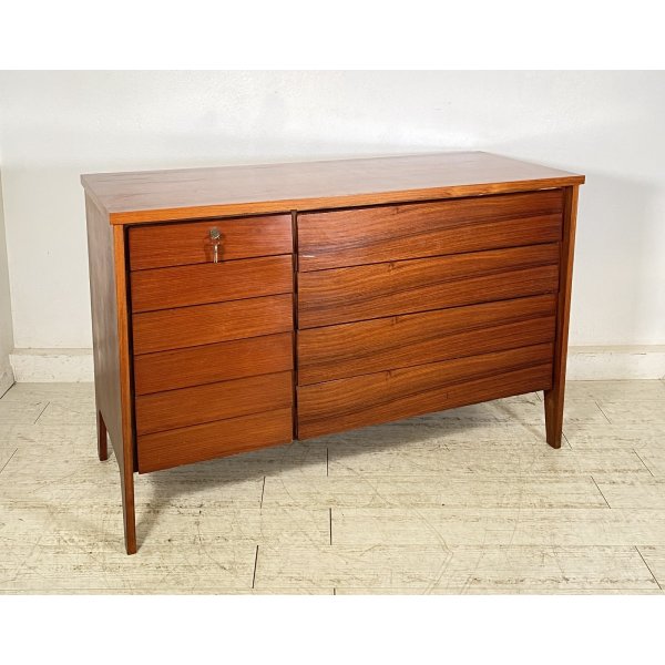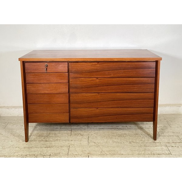 Fantastico comò vintage anni 50 attribuibile a Vittorio Dassi, tutto realizzato in legno con 10 cassetti, di cui uno piccolo con serratura funzionante
