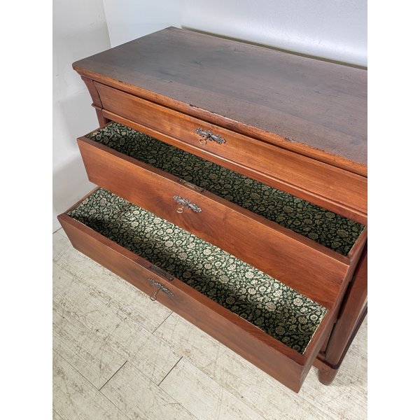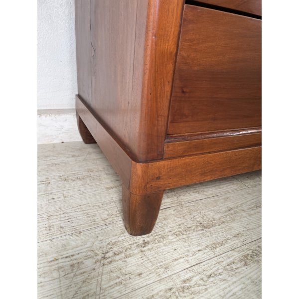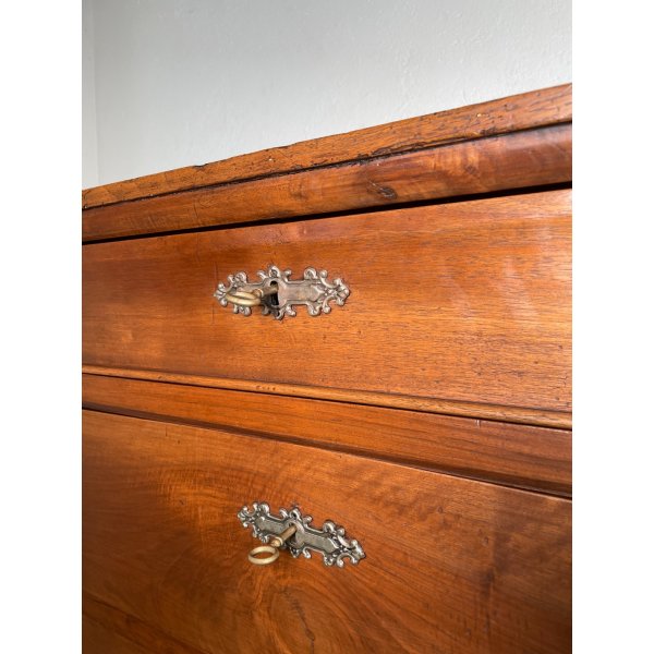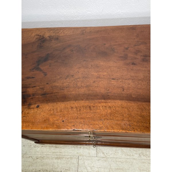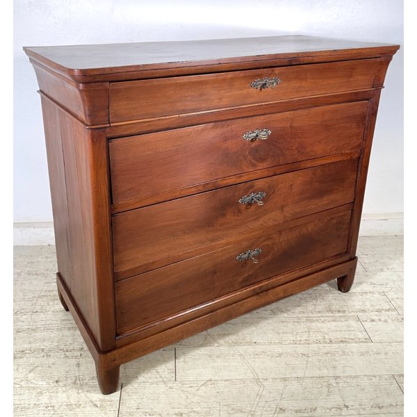 Splendido ed antico comò cappuccino con 4 cassetti, in legno di noce, originale d'epoca, buone condizioni, finitura a cera.