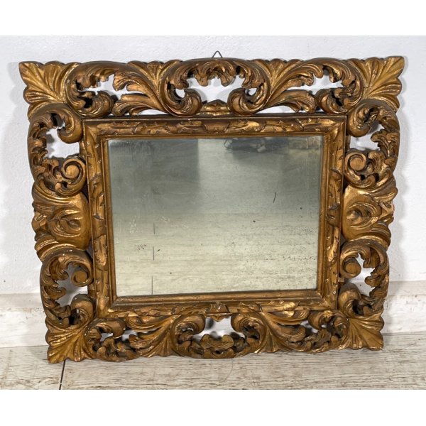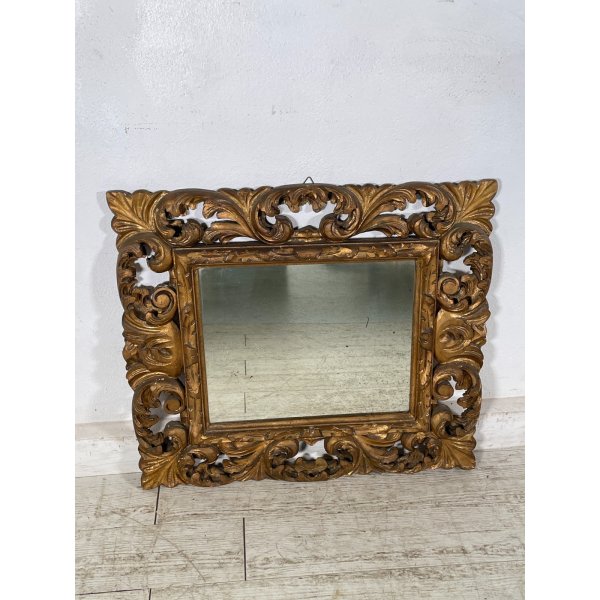 Condizioni: Buone condizioni, normali segni del tempo sugli angoli, segnalo perdita di doratura e gessatura in alcuni punti della cornice, specchio originale con segni del tempo, guardare attentamente le foto allegate in inserzione!!