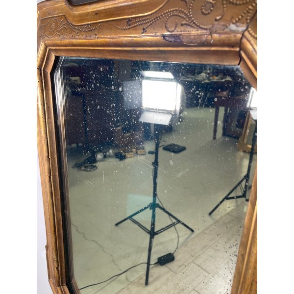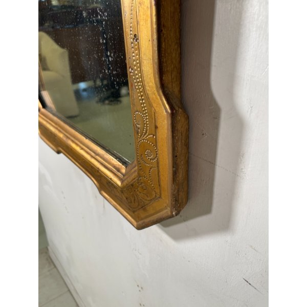Meravigliosa specchiera con cornice vassoio dorata, epoca 1800, buone condizioni data l'epoca.