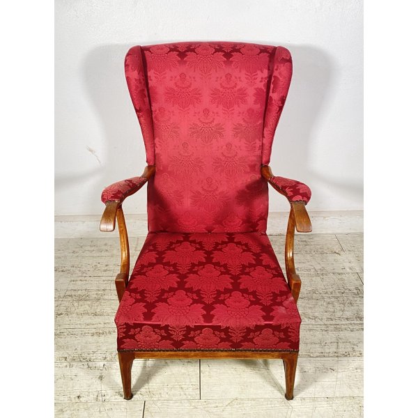 Fantastica poltrona di design anni 50 di Paolo Buffa per Frama, con struttura in legno e rivestimento in tessuto