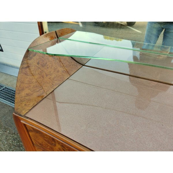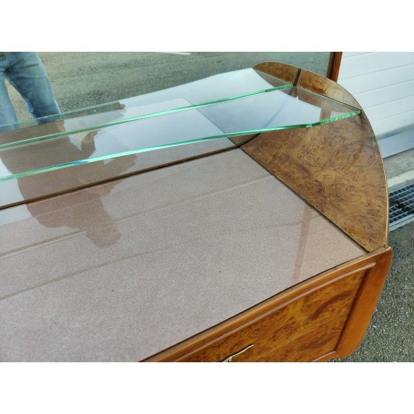 Materiali: Legno di radica, ottone dorato, vetro, specchio