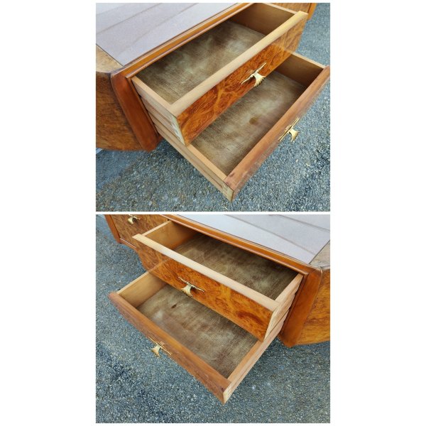 Condizioni: Molto buone, presenti lievi e normali segni del tempo ed utilizzo che non deturpano il fascino del mobile, segnalo piccola sbeccatura sul vetro trasparente, lo specchio presenta aloni dovuti all'epoca, il tutto visionabile attraverso le foto allegate in inserzione