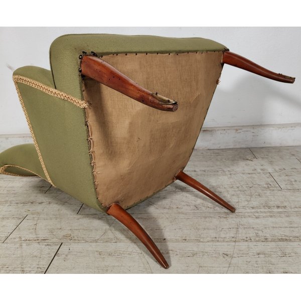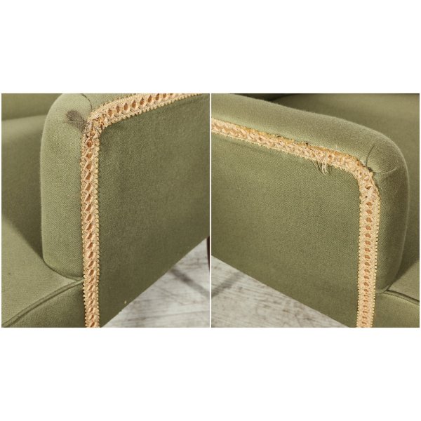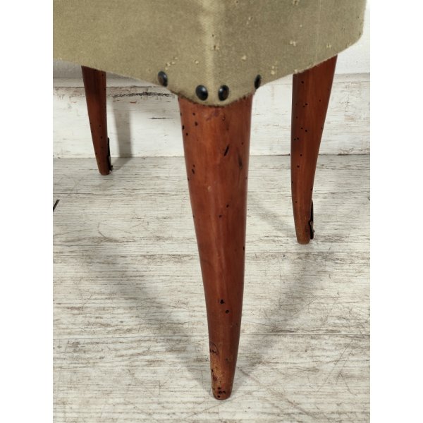 Condizioni: Discrete condizioni generali, la stoffa presenta lieve usura e qualche macchia, la struttura presenta fori di tarlo non più attivo, trattamento antitarlo effettuato in maniera preventiva, segnalo la mancanza di un terminale in ottone su una gamba, il tutto visionabile attraverso le foto allegate in inserzione