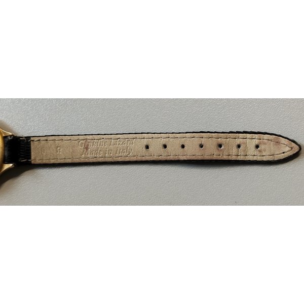 Splendido ed elegante orologio da polso donna placcato oro con cinturino in pelle nero, di altissima manifattura orologiaia,