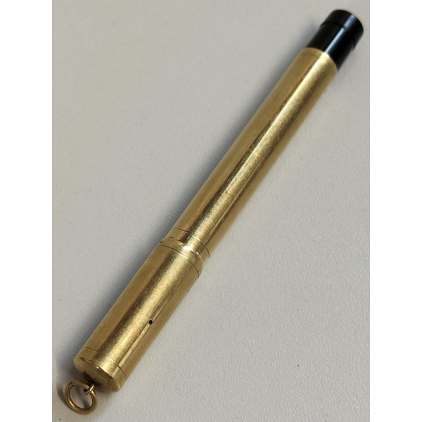 Deliziosa ed antica penna stilografica retrattile, safety, corpo oro 18kr finemente e tappo con occhiello, originale d'epoca, con pennino Warranted 14k New York 3