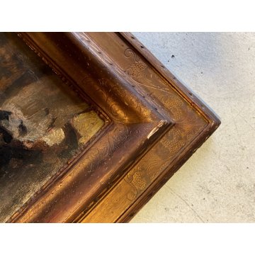 Condizioni: Buone data l'epoca. Il dipinto presenta leggeri segni del tempo, segnalo la fessurazione della tavola su cui è stato realizzato, al verso si possono vedere i giunti delle tavole con splendidi incastri a farfalla, particolari da non considerarsi un difetto. La cornice presenta usura e salti di decoro stuccato e dorato.Tutto visibile dalle foto allegate all'inserzione. Analizzarle con attenzione