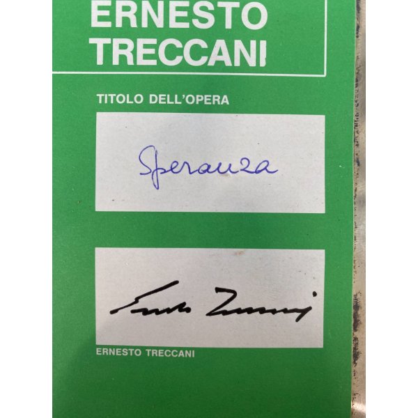 Splendido dipinto ritratto femminile, multiplo su lastra d'argento, N° CLXXIV (174) - di una tiratura di CC (200) esemplari. Al verso presenta un cartiglio con autentica, titolo e firma tutto visibile dalle fotografie allegate. Opera firmata in basso a destra "Ernesto Treccani". Una rappreentazione onirica nella quale la figura sembra galleggiare e fondersi con lo sfondo astratto dai toni verdi, gialli, azzurri e arancioni. "Speranza" è una figura femminile elegante, un ricorrente soggetto di Ernesto Treccani, uno dei pittori italiani più noti del secolo XX, fu anche poeta. A 18 anni divenne direttore di "Corrente", il movimento legato all'espressionismo che ha contato, tra le sue fila, i nomi più illustri della pittura italiana del secolo scorso, da Birolli a Guttuso, da Cassinari a Morlotti, Sassu, Migneco. Ernesto Treccani è un artista quotato e presente in asta. L'opera è inserita in una cornice in legno dorato, il passepartout in cartoncino presenta aloni dovuti all'umidità.