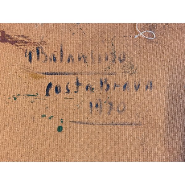 Stupendo grande dipinto (50 x 70 cm), rappresentante una marina, uno scorcio tra le rocce della Costa Brava, lascia intravedere tra la vegetazione selvaggia, una barca a vela, che si staglia sul blu intenso del mare. Dipinto titolato al verso "Costa Brava", opera di Giovanni Balansino. Paesaggio reso con grande immediatezza attraverso forti contrasti chiaroscurali, con pennellate corpose, visibili, influenzate dall' Impressionismo, capaci di esprimere emozione e atmosfera. Il dipinto realizzato ad olio su faesite, si presenta senza cornice, firmato in basso a sinistra "G. Balansino" (1912-1986) artista piemontese d'origine, lombardo di adozione, quotato e presente in asta.