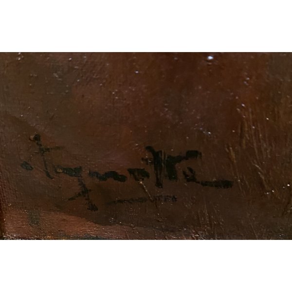 Autore: L'opera è firmata frontalmente in basso a sinistra. Ivan Karpof (1898 - 1970) - Ivan Michailoviĉ Karpov (Novočerkassk, 30 gennaio 1898 – Milano, 6 luglio 1970) è stato un pittore russo. Mostrando sin da bambino una grande predisposizione verso la pittura, il padre medico chirurgo lo incoraggiò affidandolo alla supervisione di un pittore locale. Dopo aver terminato gli studi al liceo artistico di Rostov, nel 1916 venne chiamato alle armi e inviato al fronte sud. Ferito e fatto prigioniero prima dagli austriaci e poi dagli inglesi, riparò in Bulgaria, a Sofia, dove cominciò a studiare all'Accademia di Belle Arti. Nel 1925 vince una borsa di studio americana che gli consente di partire alla volta dell'Italia. Giunto a Milano nel 1925, si diploma brillantemente all'Accademia di Belle Arti dopo aver seguito il corso di pittura di Ambrogio Alciati. Durante gli anni all'Accademia conosce la pittrice Julia Ivanovna Lund (1905-1974), di origini norvegesi ma nata in Russia, che diventerà sua moglie nel 1930 e da cui nasceranno tre figli. Sebbene la Seconda guerra mondiale avesse causato un periodo di stasi nell'attività espositiva milanese del pittore, artista estremamente fecondo, si distingue subito nell'ambiente milanese e il suo stile particolare attira l'attenzione di numerosi critici d'arte che apprezzano la sua capacità di saper unire una sensibilità caratteristica dell'arte slava a temi che richiamano paesaggi tipicamente italiani (nella fattispecie, lombardi). I soggetti presentano infatti elementi che ricordano paesaggi russi e che tradiscono la nostalgia del pittore nei confronti della madrepatria, alla quale non farà mai ritorno.