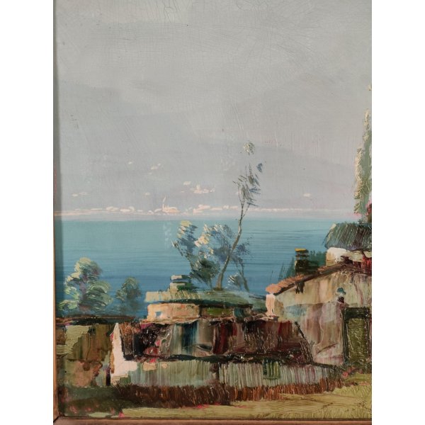 impressioni del lago maggiore", opera realizzata negli anni 40/50 contenuta in una cornice dorata