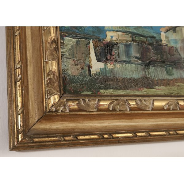 Materiali: Dipinto ad olio su tavola di cartoncino telato, cornice in legno scolpito e dorato
