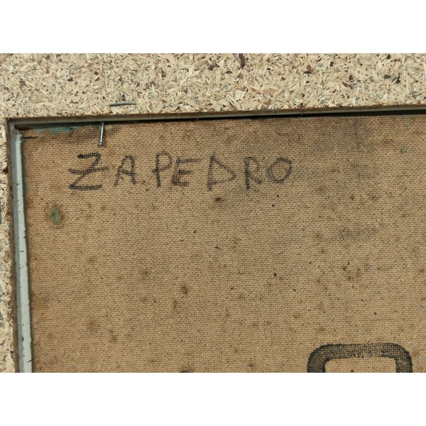 Zapedro". Zapedro fu un noto artista attivo nella località di Borgomanero. Dipinto contenuto in una semplice cornice lignea bianca con passepartout in juta.