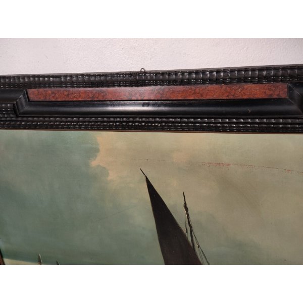 Condizioni: Discrete condizioni conservative, cornice con normali segni del tempo ed utilizzo, il dipinto presenta una riparazione in alto a destra ed alcuni graffi / segni sulla tela, il tutto visionabile attraverso le foto allegate in inserzione