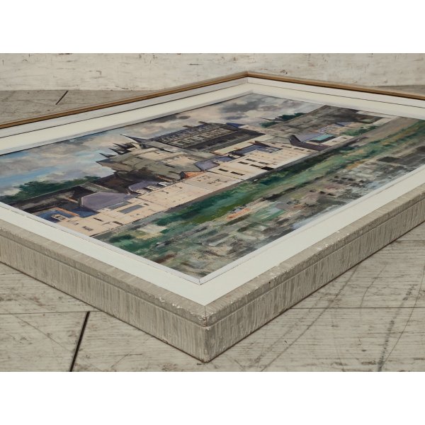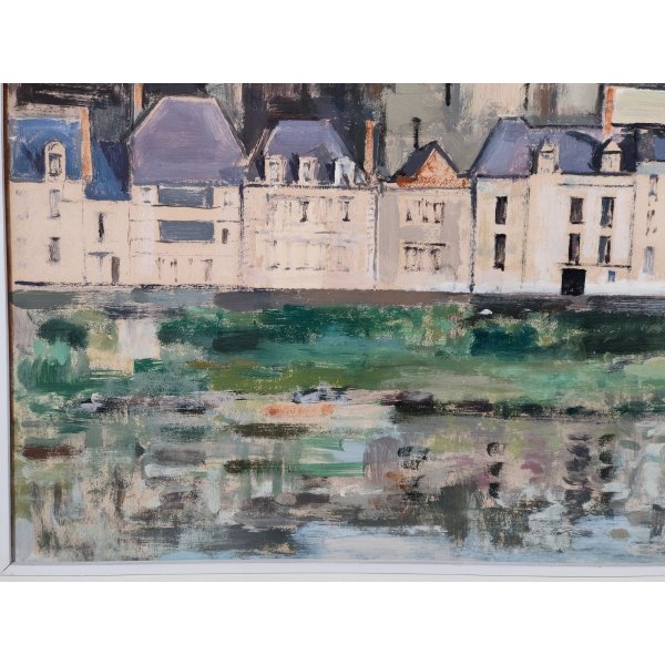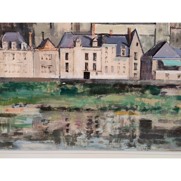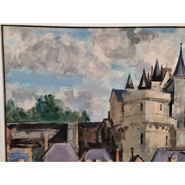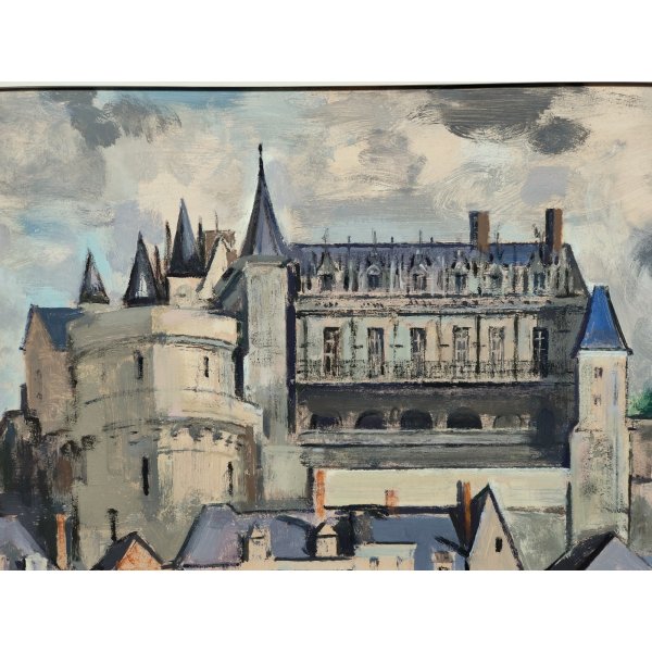 Suggestivo quadro raffigurante veduta sul Castello Reale di Amboise in Francia, paesaggio di ottima fattura e tecnica pittorica, opera firmata in basso a destra