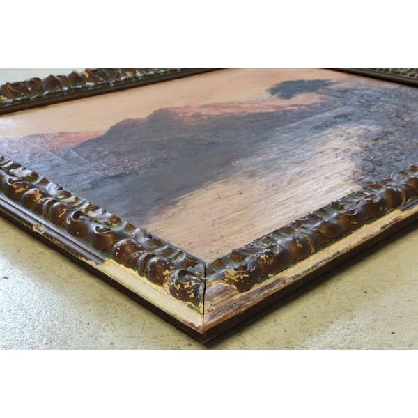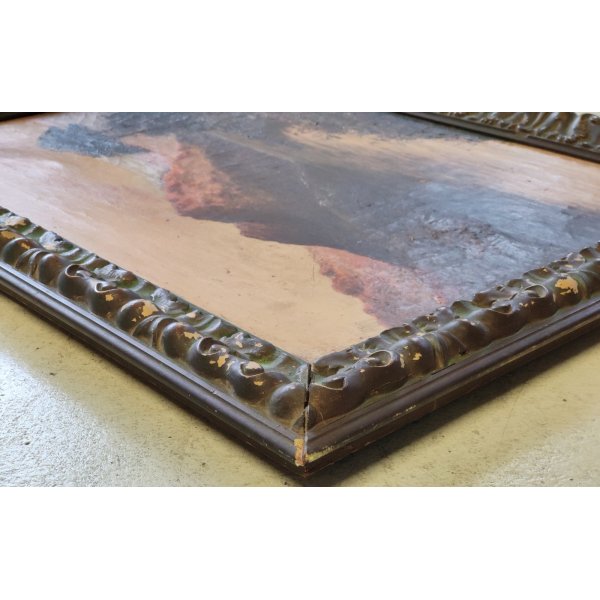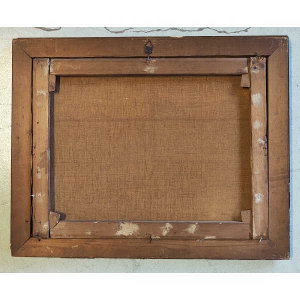 Condizioni: Discrete condizioni generali, il dipinto presenta cracle e 2 piccoli strappi della tela, cornice con evidenti segni del tempo e finitura mancante, il tutto valutabile dalle foto allegate in inserzione