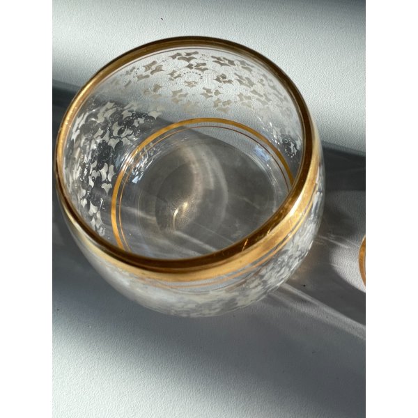 Materiali: Vetro soffiato, molato, trasparente, bordatura in oro zecchino