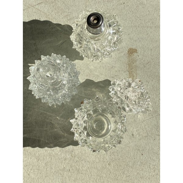 Condizioni: Antichi usati, nell'insieme in buone condizioni conservative, possono presentare piccole sbeccature poco visibili, sensibili solo al tatto, segnetti dovuti all'appoggio e all'utilizzo. Segnalo la mancanza della pompetta del porta brofumo e filature della cromatura. Tutto valutabile dalle fotografie allegate all'inserzione, analizzarle attentamente
