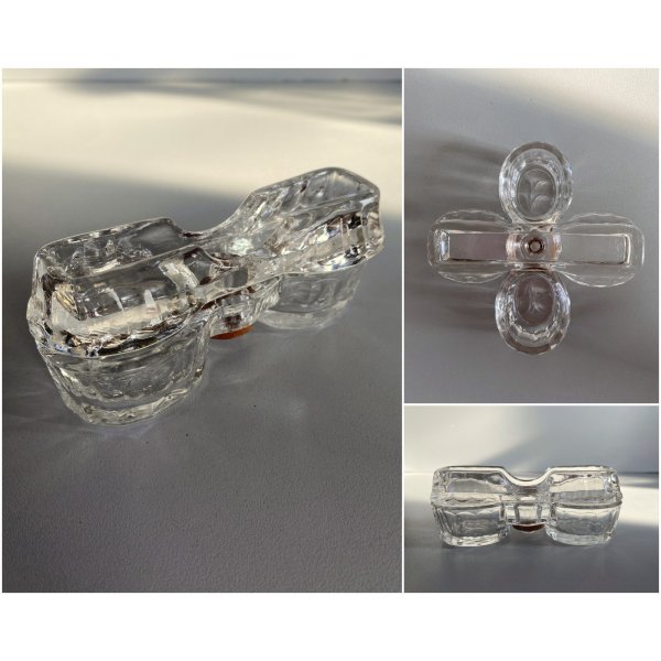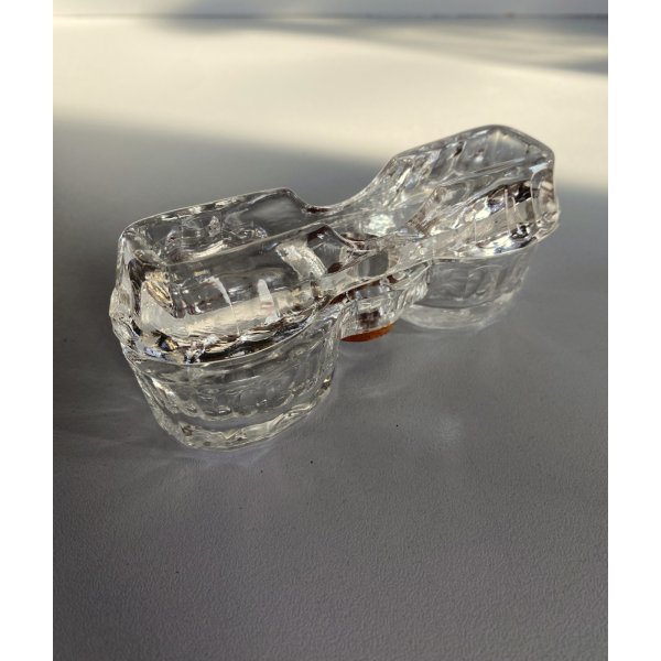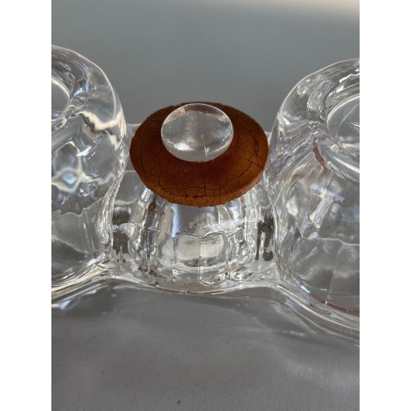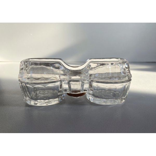 Modello: Set Tavola, Menage condimento, Vintage Glass Double Salt Cellar Dip Dish With Toothpick Holder on Top