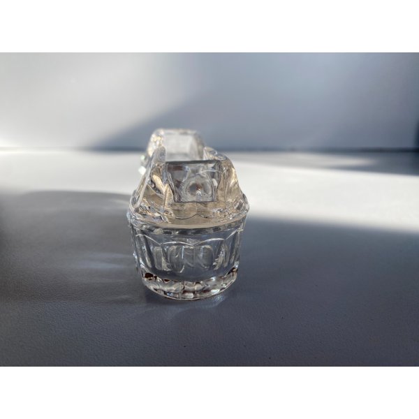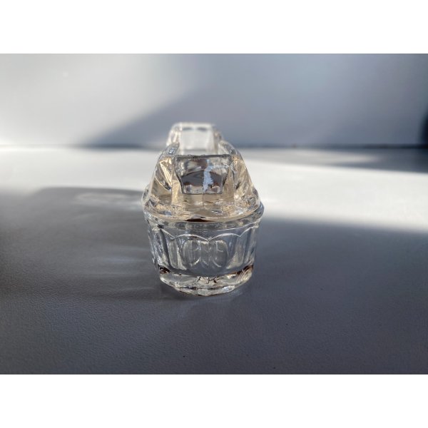Meraviglioso vintage set da tavola, per condimento "sale&pepe" in vetro pressato con coperchio girevole adatto a contenere stuzzicadenti.