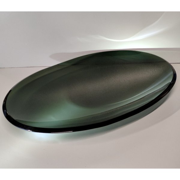 Note: Ciotola bowl in vetro verde fumé, vintage. Attraversato dalla luce il vassoio si accende di verde più acceso, per amatori e collezionisti ... da non perdere!!