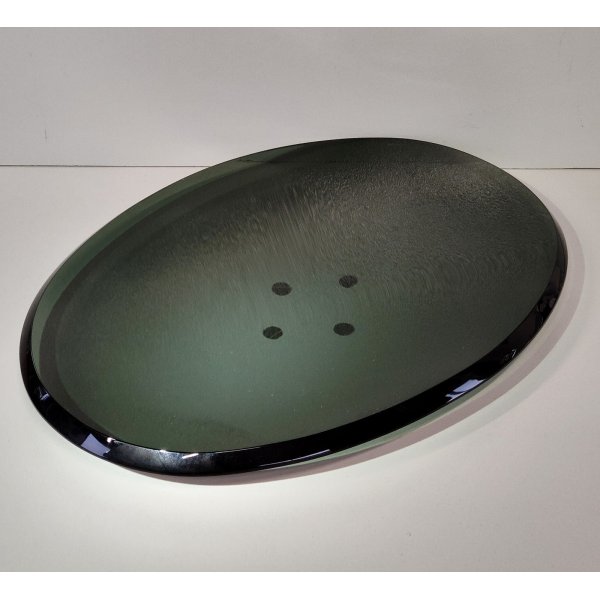 Note: Ciotola bowl in vetro verde fumé, vintage. Attraversato dalla luce il vassoio si accende di verde più acceso, per amatori e collezionisti ... da non perdere!!