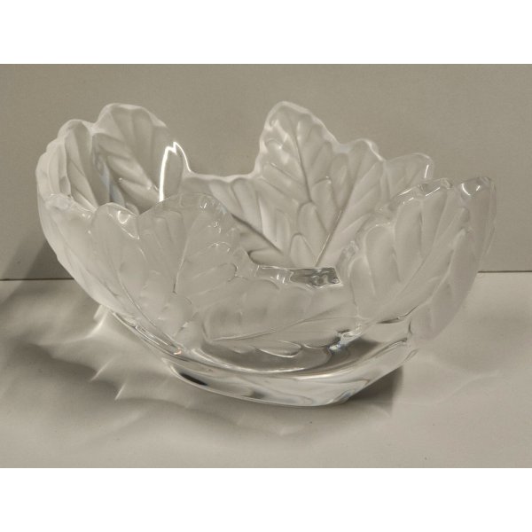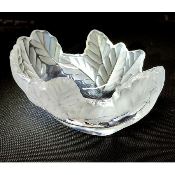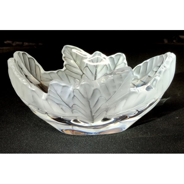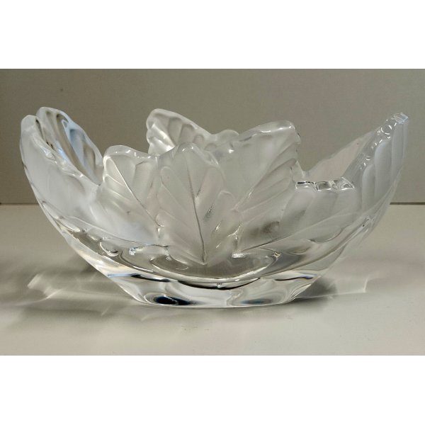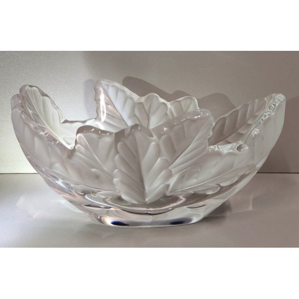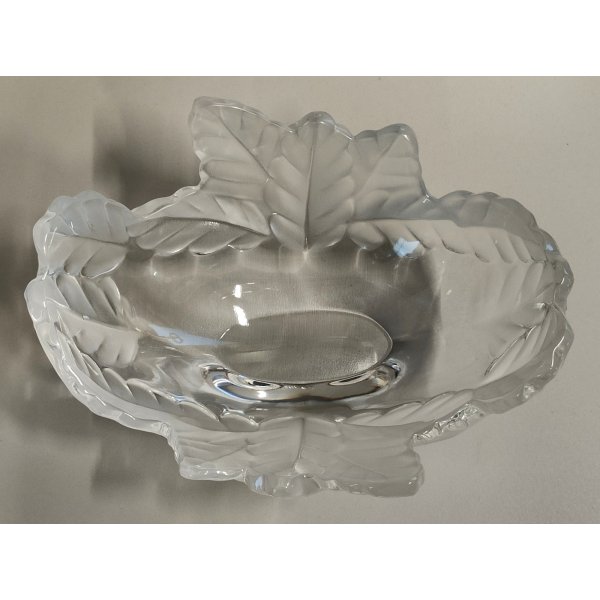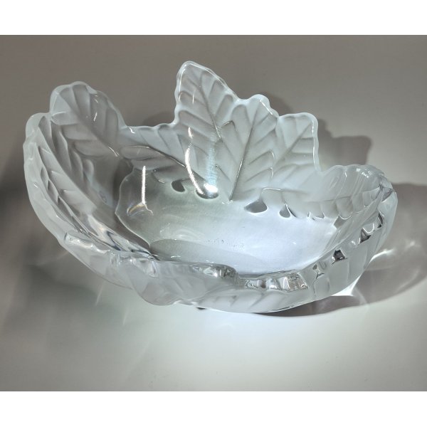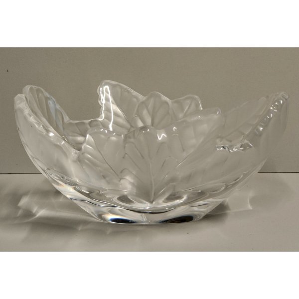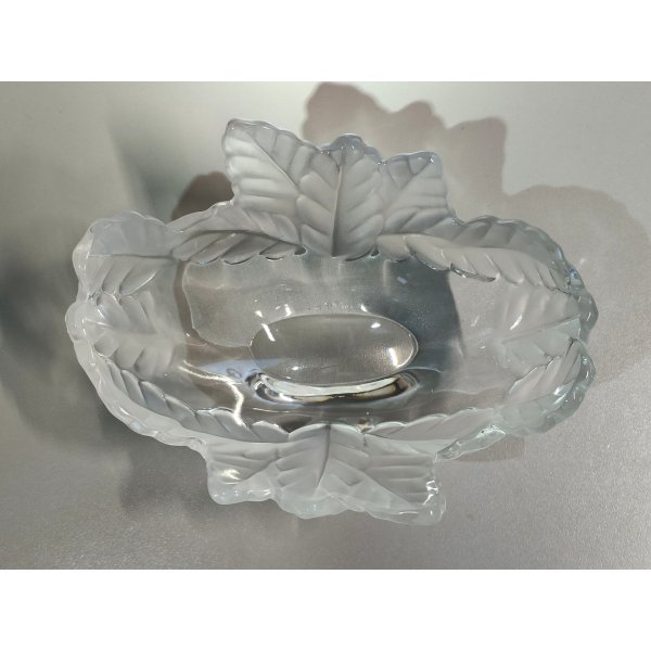 Incantevole ciotola ovale in cristallo, con figure a foglia di quercia, firmata sul basamento, "